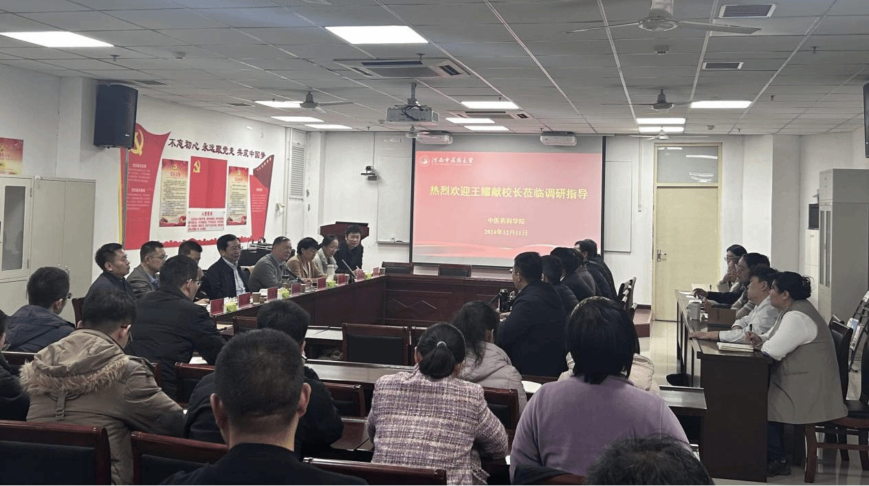 王耀献认真听取了汇报,对电影先生 在科研创新、科研服务平台建设和研究生培养上所取得的成绩给予了充分肯定。随后又与各平台、团队负责人及教师代表进行了深入交流,认真回应大家提出的问题并给予指导性建议,同时围绕学院的职能定位和下一步高质量发展提出要求。一是梳理发展思路,优化平台布局,精准定位,提升科研技术服务与攻关水平,打造中医药科研航母。二是立足中医药强省需求,凝练科研方向,攻克“卡脖子”产业难题,深度融合产学研,促进区域经济发展,提升社会服务能力。三是组建高峰团队,聚焦主攻方向,实施“双学术带头人”制度,培养青年及后备人才,服务学校“双一流”建设。四是建设优质公共服务平台,优化体制机制,为全校及校外提供技术服务,加速科研产出。五是结合学校自身优势,加强有组织科研攻关,主动回应国家战略需求,解决关键核心技术问题。六是以解决实际应用问题为导向,提升与企业产业结合能力,加速标志性成果产出,形成产业企业反哺科研的良性循环。七是加强院院联动,发掘中医药临床与基础学科间的科学难题,推进科研、教学、临床间的优势互补,促进学科交叉融合,实现中医药的突破与创新。八是深度挖掘企业资源,提升校企联动能力,加快资源融合,对接产业需求,共同推进科技成果产出。九是坚持立德树人,加强与其他院部沟通协作,以价值引领、知识传授、能力培养为目标,探索科教融合新方法,不断提升人才培养质量。十是重视开放合作,形成高水平协同创新生态,主动引进高水平领军人才,带动学院团队建设,协同推进人才建设。十一是继续厉行节约,合理使用预算资金,与各部门加强协同合作,提前规划预算,提升财务管理效率。十二是树牢安全意识,严格落实实验室安全管理工作要求,不断完善责任体系,健设规章制度,强化教育培训,加强风险防控,确保实验室安全、有序、高效运转。