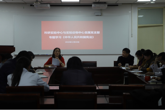 为进一步贯彻校文办的部署和有关要求,2018年12月18日下午3:00在教学综合大楼BM739会议室,科研实验中心与实验动物中心直属党支部召开中华人民共和国宪法专题学习会,中心班子成员、支委委员、党小组组长、科级干部及业务科室负责人参加会议。党支部杨文胜副主任主持会议。