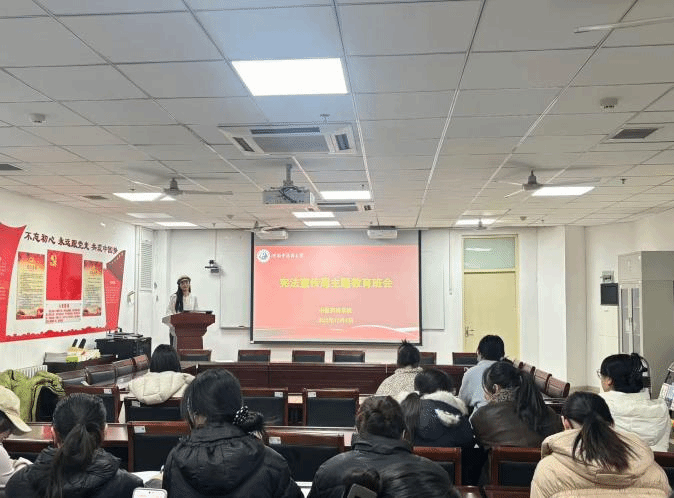 晨读活动结束后,学院辅导员段胜男围绕“宪法与我们的一生”这一主题,为在场研究生带来了一场生动而实用的宪法常识普及讲座。她结合现实案例与生活场景,深入浅出地讲解了宪法的地位、作用以及与每位公民日常学习、工作、生活的密切关联,着重阐述了公民的基本权利与义务,引导大家真正理解宪法内涵,自觉将宪法精神内化于心、外化于行。