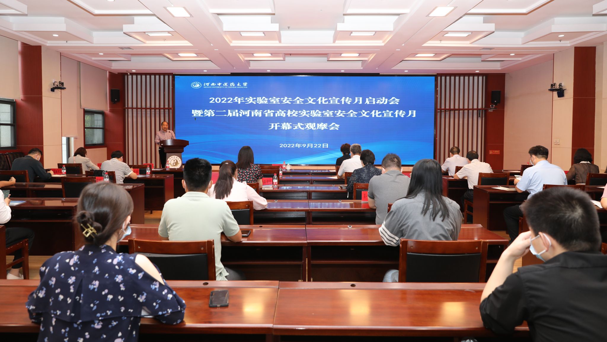 本网讯(文/谷康 图/秦东仁)9月22日,“2022年实验室安全文化宣传月启动会暨河南省第二届高校实验室安全文化宣传月开幕式观摩会”在龙子湖校区图书馆第二报告厅举行。校党委委员、副校长苗明三、党委宣传部、武装部保卫处、教务处、信息技术学院、医学院、药学院、中医学院(仲景学院)、护理学院、管理学院、康复医学院、骨伤学院、针推学院、儿科医学院、第一临床医学院、第二临床医学院、电影先生 部门负责人和实验室安全工作具体负责人和学生代表参加启动会。会议由电影先生 副院长冯素香主持。