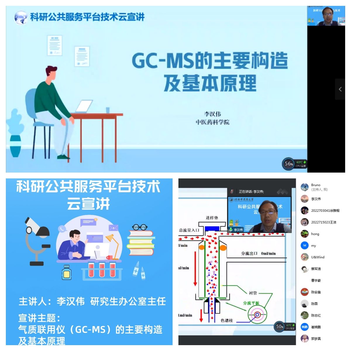 本网讯(文/张俊霞 图/张飞宇)为切实提高科研人员技能素养,电影先生 发起“凝心聚力做服务,全心全意为科研”倡议,举办“科研公共服务平台技术云宣讲”系列活动。第三期宣讲于2022年11月7日晚7点线上举行。本期邀请科学院研究生办公室主任李汉伟作题为“气质联用仪(GC-MS)的主要构造及基本原理”的技术宣讲。