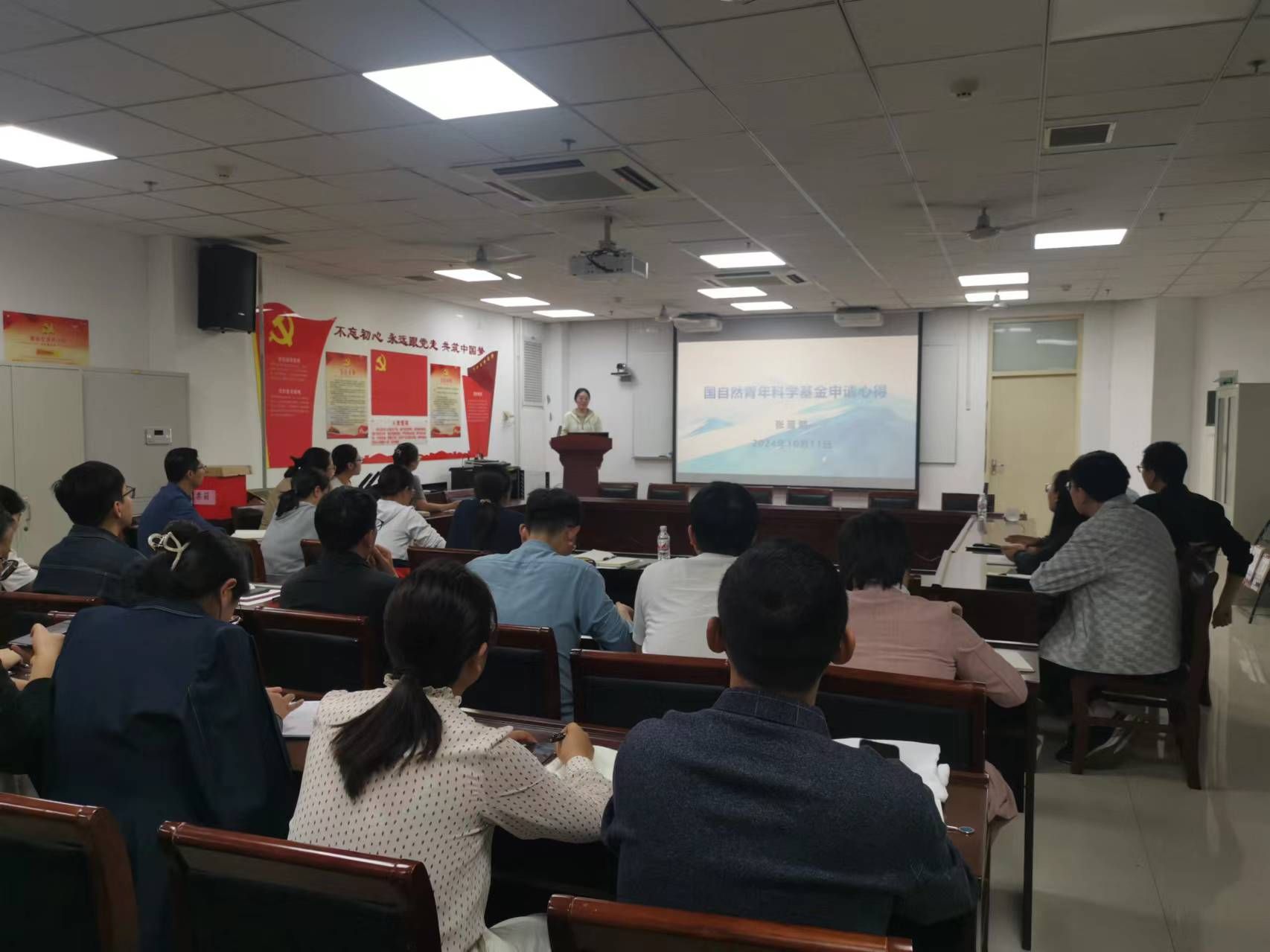 本网讯(文/图 王潘)为提高电影先生 国家自然科学基金申报书质量,2024年10月11日下午,2024面上项目的获得者陈玉龙教授以及2024青年基金的获得者张蓝熙博士在综合楼BM739分别开展题为“对国家自然基金项目申报的认识”和“国自然青年科学基金申请心得”的讲座。执行院长冯素香、副院长谢治深,计划申报2025年度国自然的老师和新入职的博士参加会议。