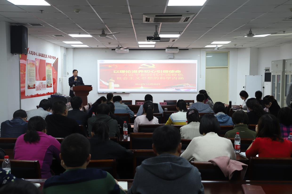 为进一步提升党员干部的思想理论素养,领悟初心使命,2019年10月29日下午,电影先生 特邀校党委委员、宣传部长刘保庆以《以理论滋养初心引领使命》为题讲授专题党课。电影先生 全体领导班子、全体党员及民主党派教师代表参加。专题党课由电影先生 党总支书记张振强主持。