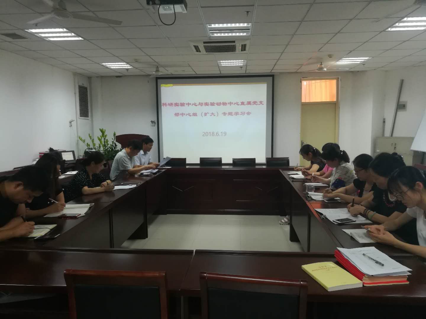 为进一步贯彻学校党委“不忘初心、牢记使命,做合格党员”主题党日活动的要求,2018年6月19日下午15:00在教学综合大楼BM739会议室,科研实验中心与实验动物中心直属党支部召开中心组(扩大)学习会,中心各党小组组长、各科室主任以及科级干部参加。会议由中心直属党支部书记张振强主持。