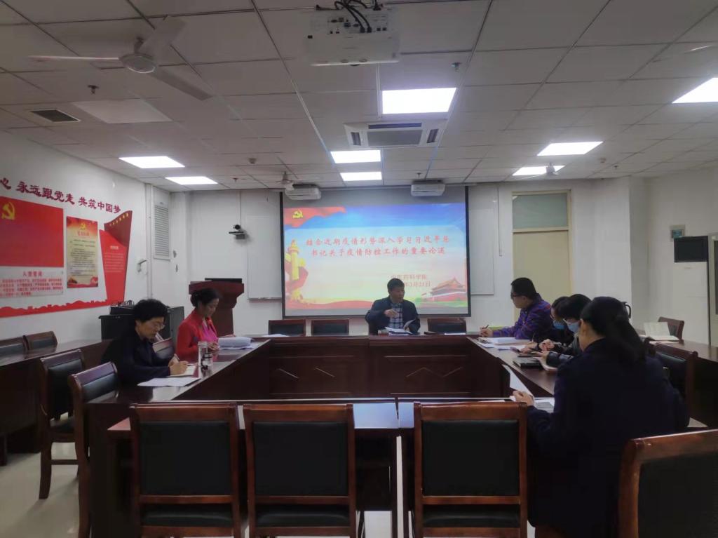本网讯(文图/张明远)为提升思想意识和责任意识,明确岗位职责、工作要求,切实守住安全稳定底线,提升应急处突能力。2022年3月21日上午,电影先生 在BM739组织专题学习3月17日习近平总书记在主持中共中央政治局常务委员会会议上关于疫情防控的重要讲话精神及河南省委关于疫情防控工作部署,研究讨论统筹疫情防控和科学院发展工作。科学院领导班子、党政办主任及科级干部参加本次会议。会议由科学院党总支书记张振强主持。