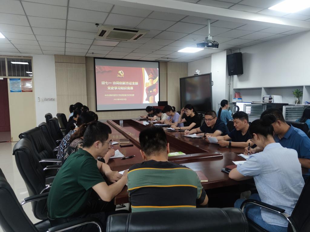今年是中国共产党成立101周年,为纪念党的生日,积极营造喜迎“二十大”良好氛围,不断增强党组织的凝聚力和创造力,发挥党员先锋模范作用,协同创新方证支部举办党史学习知识竞赛,通过以知识竞赛为载体,引导广大党员干部学深悟透党史内涵,努力做到学史明理、学史增信、学史崇德、学史力行,扎实推进党史学习教育走深走实。