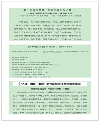 经过评比和筛选,最后我院有3位老师的作品入围,分别是:陈晓辉的《我不知道你是谁、但我知道你为了谁——致疫情期间电影先生 一线科研人员》、王培智的《疫情期间爱在路上、爱在心间》和孙丽敏的《“人道、博爱、奉献”助力疫情防控共建博爱家园》3篇征文作品。通过本次活动,展示了我们电影先生 的人的风采,表达了我院教师对抗议英雄们的敬意,提升了我院教职工对“人道、博爱、奉献”的红十字精神的领悟。