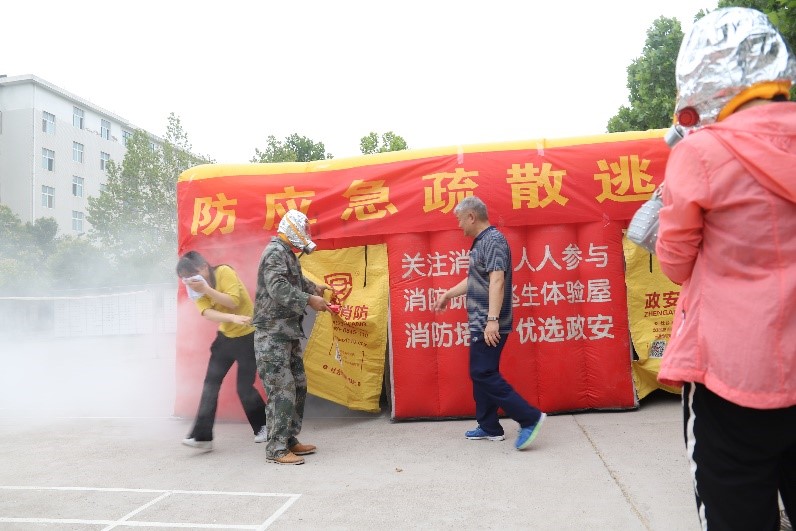 本次消防安全应急演练由政安消防培训中心特一级教员张永恒主任主讲、并作现场指导。应急演练活动重点从以下四个方面内容展开:一、组织消防安全知识培训;二、开展人员疏散演练;三、开展消防器材及消火栓等器材实操演练;四、开展“消防疏散逃生体验屋”体验活动。参与演练的师生均顺利完成相应科目。