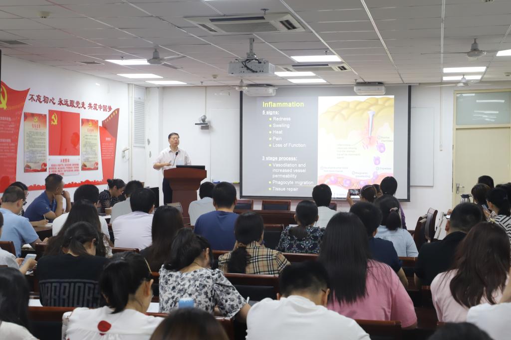 姜勇教授围绕炎症、感染、休克相关的细胞信号调控及其分子机制的研究,阐述了炎症、休克过程中信号转导机制及其相关信号分子的鉴定、克隆和功能研究对科学发展做出的重要贡献。姜勇结合自己申报项目的感悟进行分析,为在座师生提供了良好的科研思路。讲座结束后,姜勇教授和参会者进行了亲切、深入的交流。