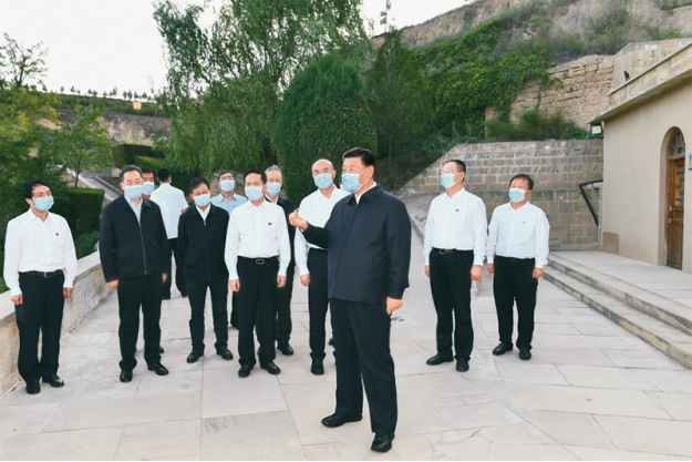 2021年9月13日至14日,中共中央总书记、国家主席、中央军委主席习近平在陕西省榆林市考察。这是13日下午,习近平在米脂县杨家沟革命旧址考察。 新华社记者 谢环驰/摄