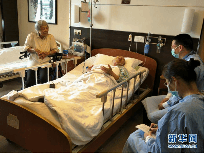 卢永根在病房里与学校师生交流(2018年5月4日摄)。 新华社记者刘宏宇摄